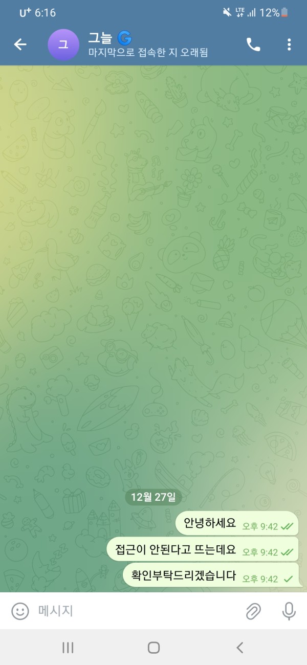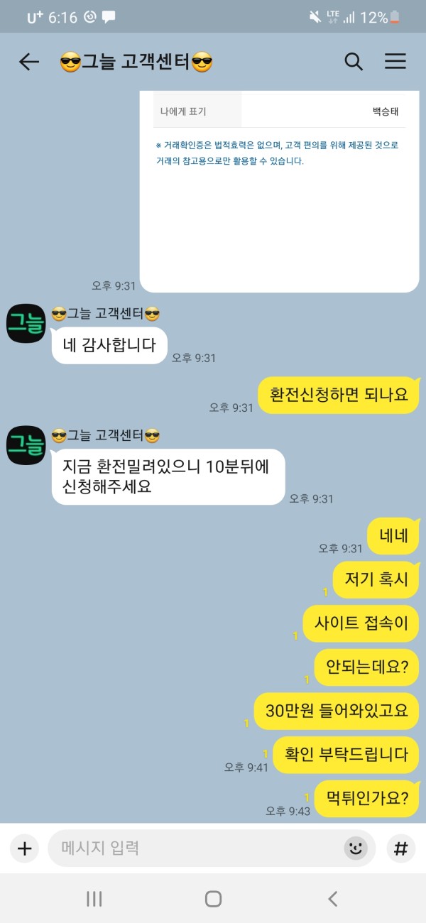 사이트 접속 불가에 카톡,텔레 고객센터는 저를 차단 하더군요