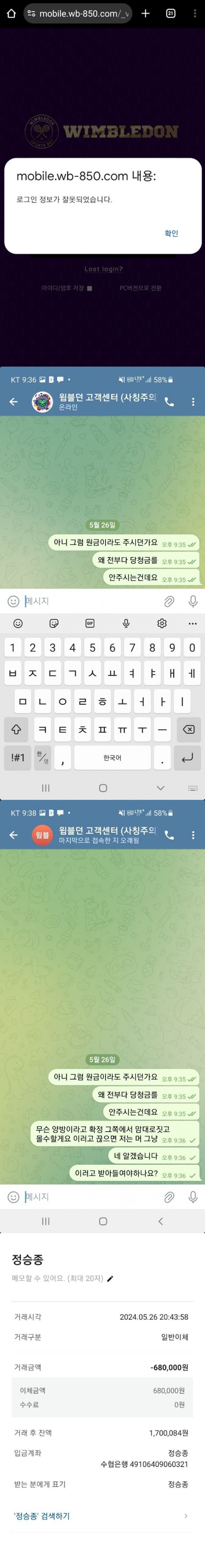 윔블던 먹튀 익명470f 이름으로 검색 이름으로 검색 2024-05-28 05:50 790 1 수정 삭제 목록 본문 사이트명 윔블던 사이트URL https://wb-850.com 제보내용 돈이 200만원도 없어서 양빵이라고 주장하며 돈을 주지 않습니다. 양빵이 아니라고 아무리 설명해도, 그냥 전화 통화로 일방적으로 통보하고 끊어버립니다. 입금한 돈조차도 돌려주지 않고 차단해버리네요. 절대 이용하지 마세요! 이 내용은 작성자의 개인적인 의견이며, 해당 업체의 성향이나 이미지를 대변하지 않습니다. 참고용으로만 활용해 주시기 바랍니다. 댓글목록1 익명b5a2님의 댓글 익명b5a2 이름으로 검색 이름으로 검색 2024-05-28 05:51 뱃내역이라도 하나올려봐라 혼자 떠드는걸 올림 뭘 보냐 뱃내역이라도 하나올려봐라 혼자 떠드는걸 올림 뭘 보냐